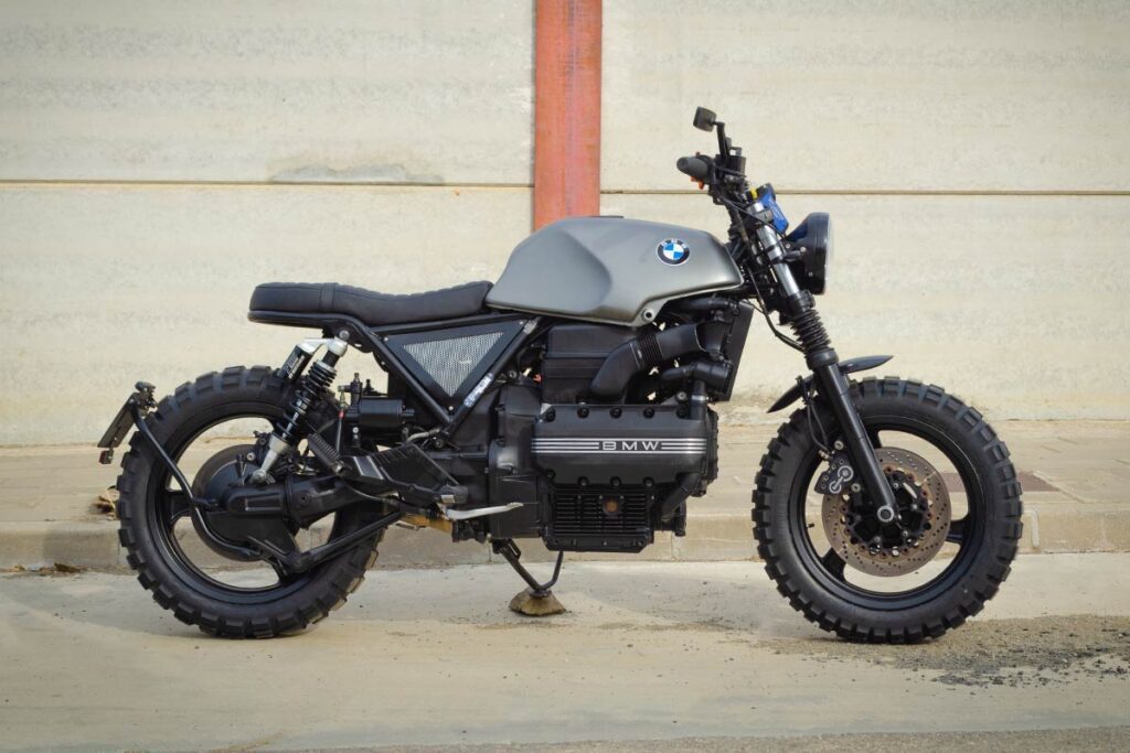 This BMW K100 scrambler stands out as a custom motorcycle in Lord Drake Kustoms cafe racer workshopin Spain for a customer who did not want the typical Cafe Racer motorcycle transformation. He wanted a “Flying brick” Scrambler.