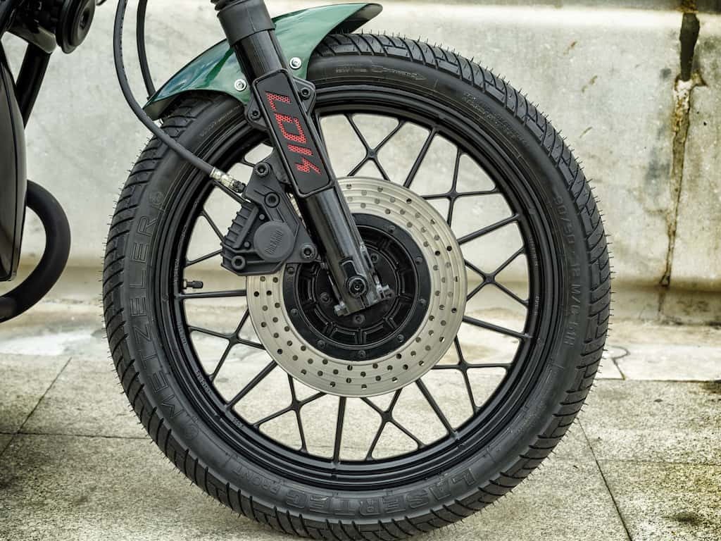 As for the color, we already had black in most elements, so we opted for a green color (Racing Green) for the body. The brown touch of the handmade saddle ended up creating the final palette.