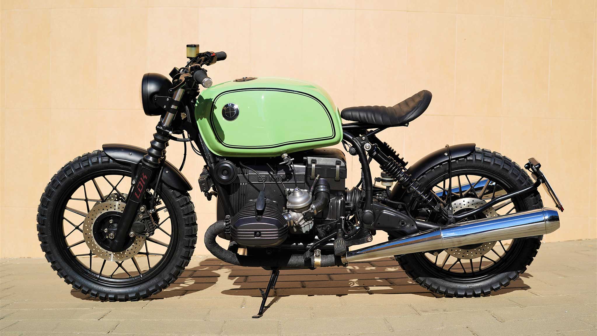 Esta es la BMW R100 Bobber Scrambler “PISTACHIO” customizada en el taller cafe racer en España de Lord Drake Kustoms. Una moto transformada en Málaga, para un cliente que buscaba un color muy atractivo y alegre.