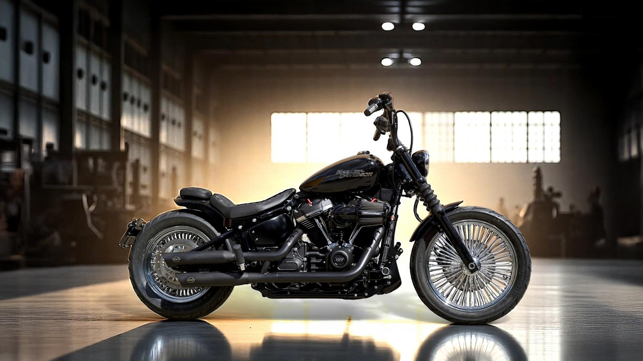 El acabado se ha mantenido sobrio y elegante, en negro brillante, dejando que las formas de la moto y los componentes custom hablen por sí mismos. El resultado es una Bobber oscura, pero con un carácter marcado por los detalles cromados de las llantas y los toques metálicos.